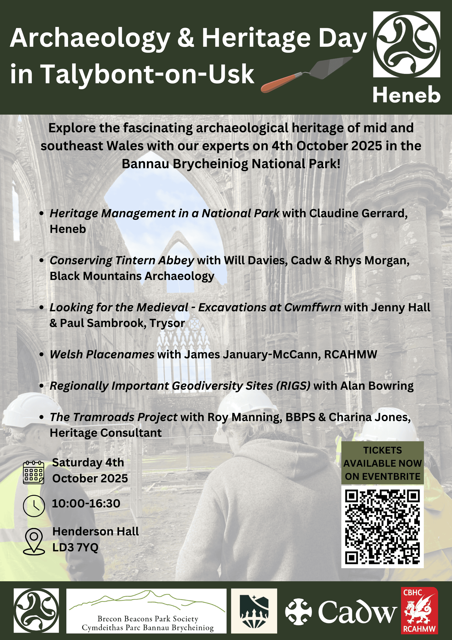 The Trust for Welsh Archaeology (Heneb) is holding a series of talks at Henderson Hall Talybont-on-Usk on 4th October.